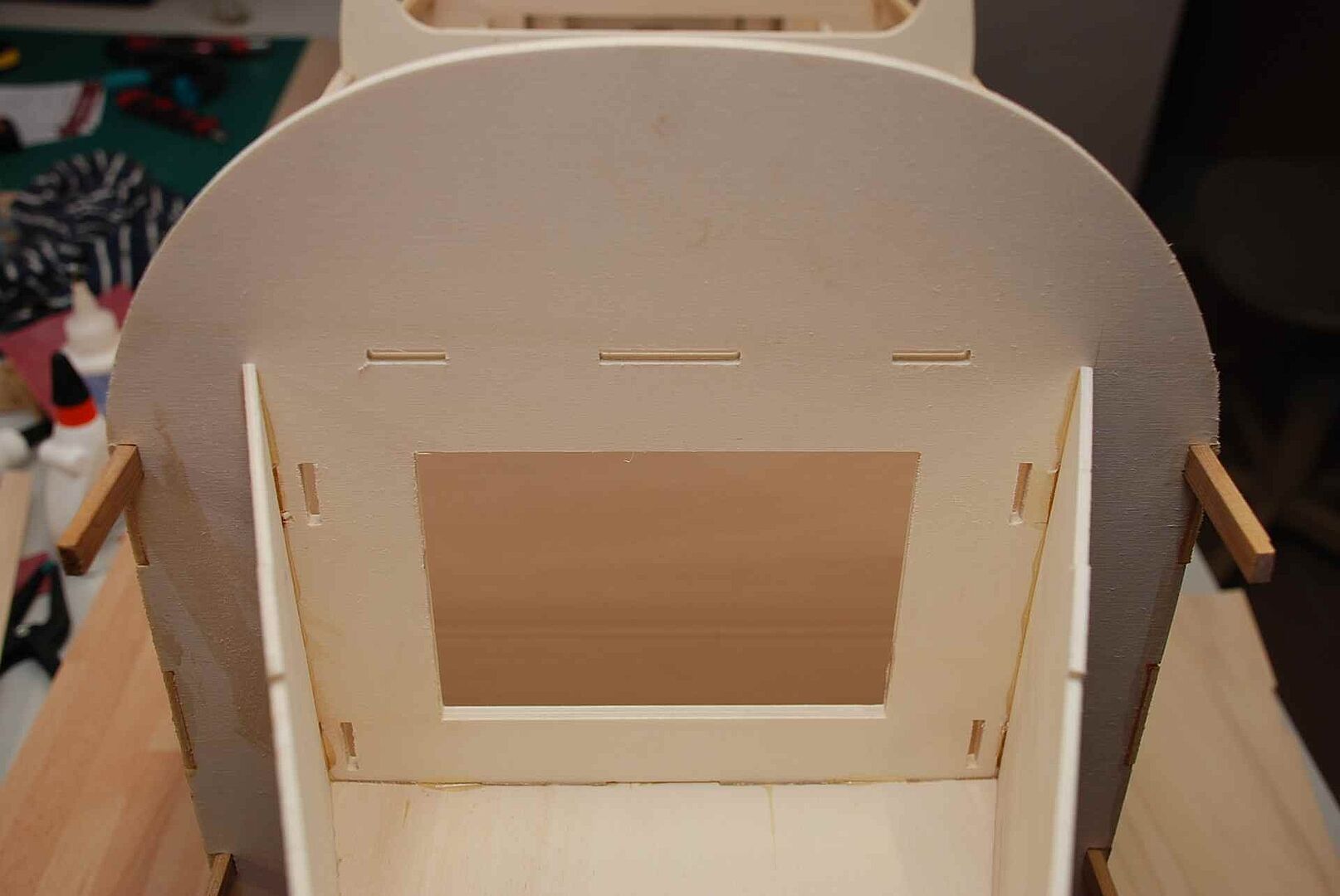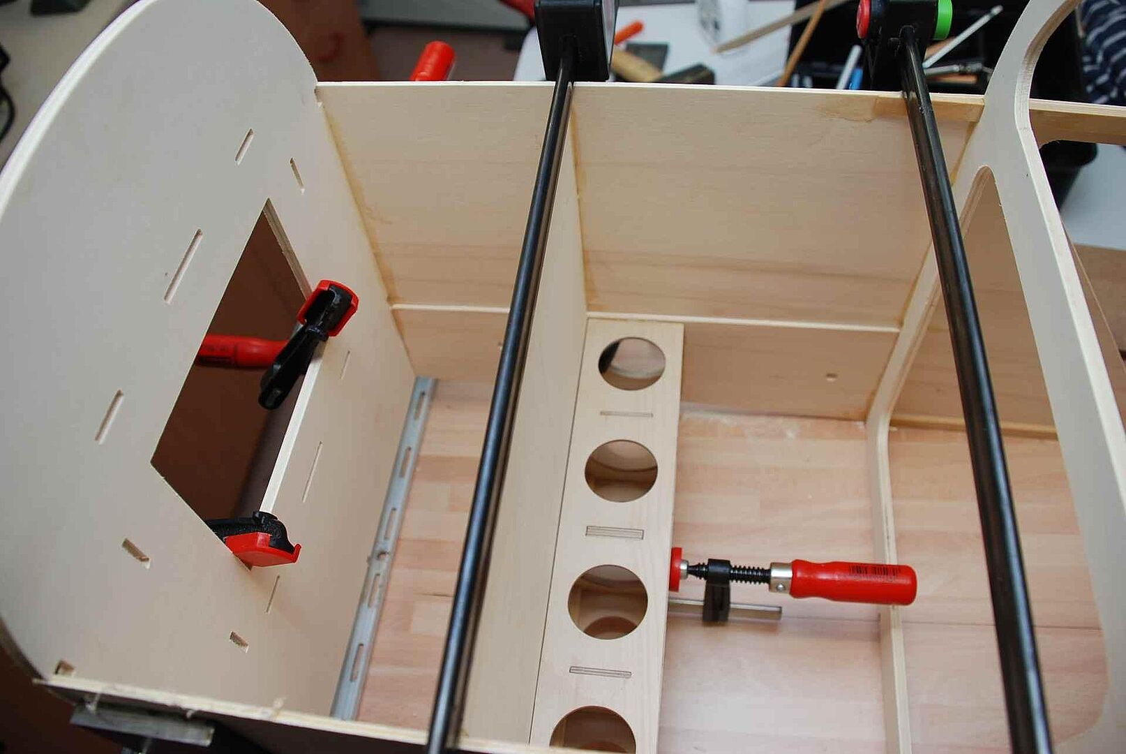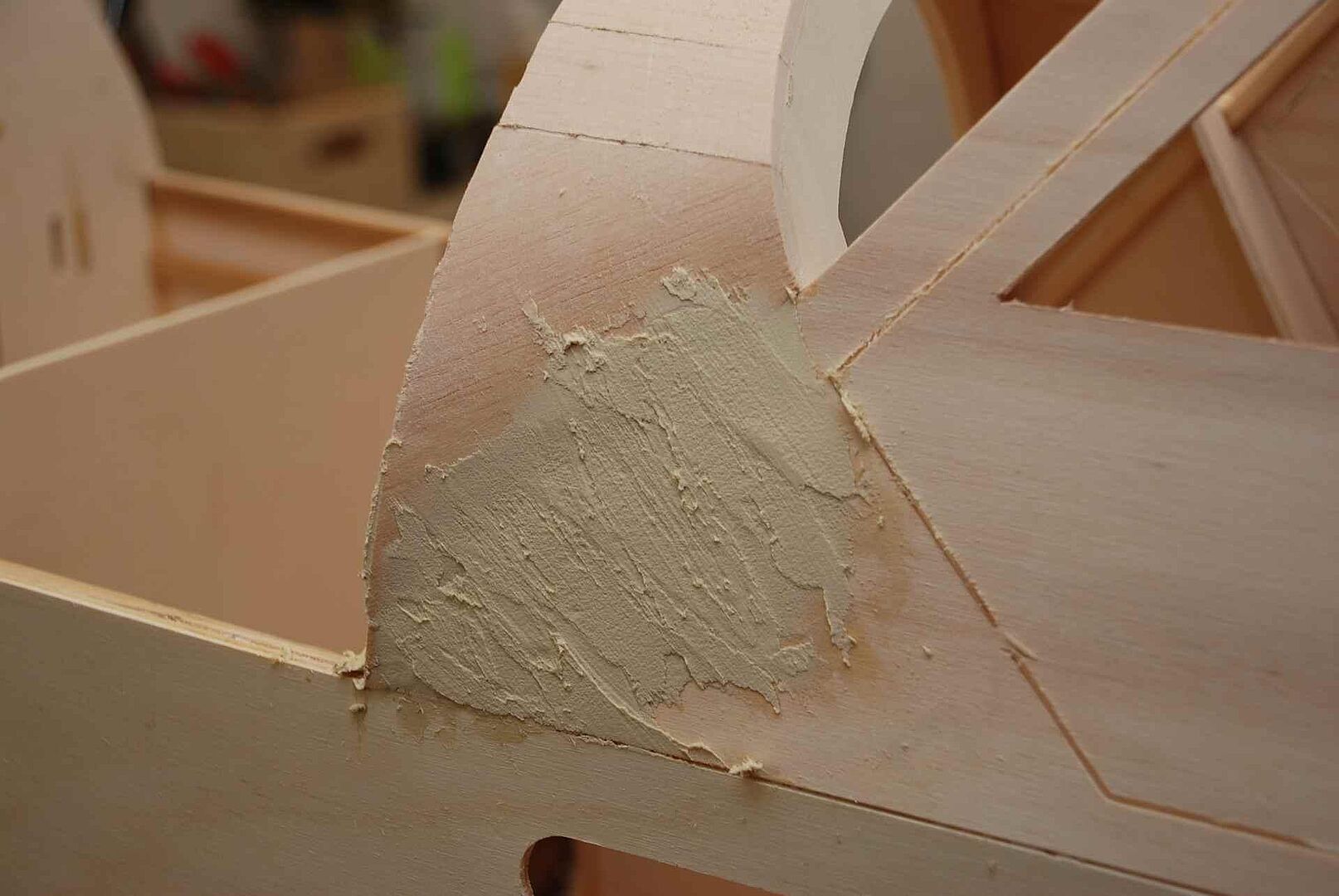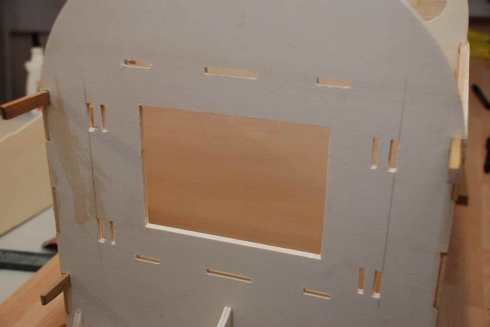 Alles begann mit einem großen Haufen Holz, meist Flugzeugsperrholz und Balsa, welches dann noch gesägt, geschliffen und verklebt wurde. Das war erstmal unspektakulär und es gibt nicht viel dazu zu sagen. Schau dir einfach die Bilder an um zu sehen wie schnell der Rumpf im Rohbau, in den nächsten Monaten entstanden ist. Später gibt es dann mehr Probleme und Herausforderungen, auf die ich dann näher eingehen werde.