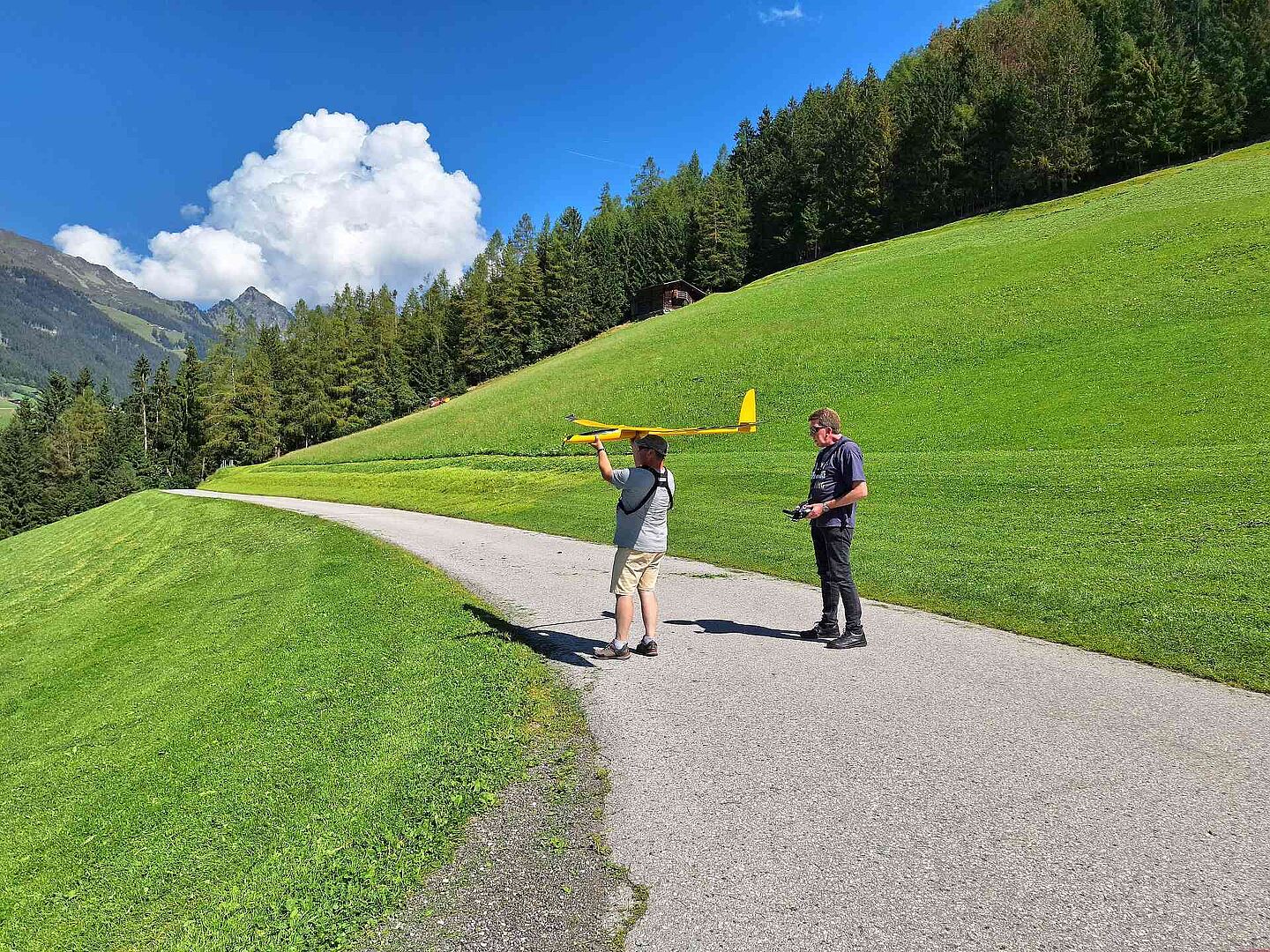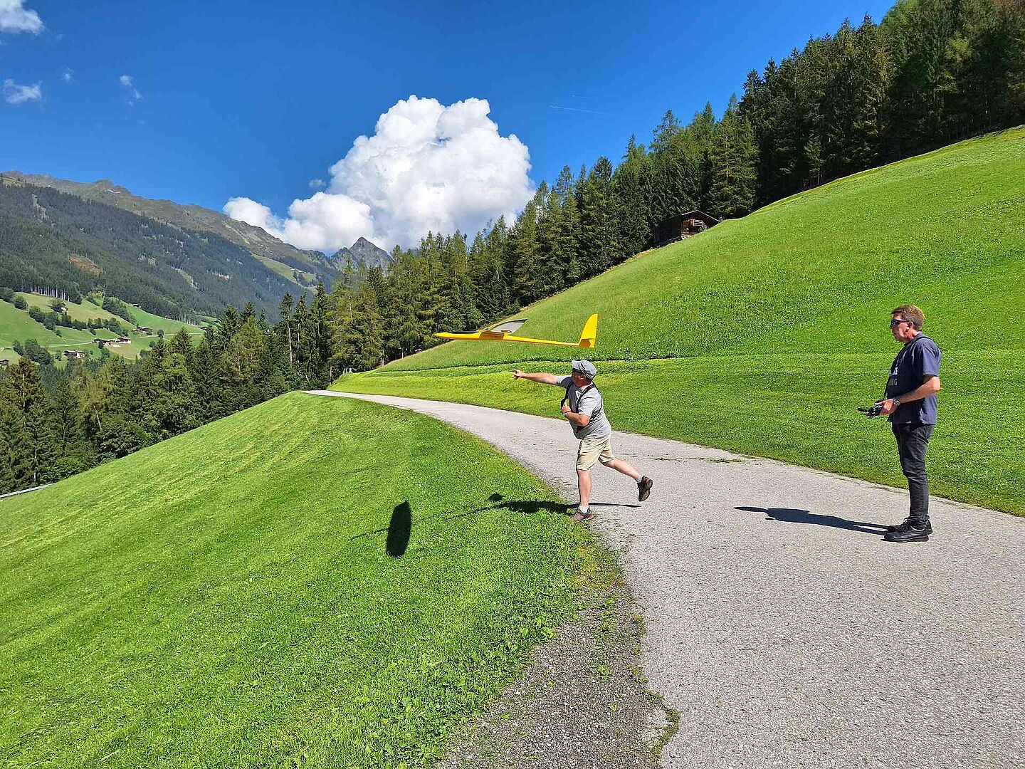 Auch in diesem Jahr hat sich eine Gruppe von 12 Modellfliegern auf den Weg gemacht, das Modellfliegerparadies Tannenalm im Zillertal in Österreich zu besuchen. Es war wie immer ein großartiges Erlebnis. Leider hat das Wetter an den ersten drei Tagen nicht so ganz mitgespielt. Am Sonntag bei der Ankunft hat es schon geregnet. Ok, da ist erst mal ankommen und aufbauen angesagt. Da wir nicht fliegen konnten, haben wir uns dem Essen und Trinken gewidmet. Am Montag war dann auch Dauerregen angesagt. Also einfach mal abhängen und abwarten. Wir haben uns die Zeit mit Basteln, quatschen, Essen und Trinken vertrieben. Am Dienstag und Mittwoch war dann wenigstens ein wenig Modellflug möglich. Und ab Donnerstag hatten wir dann sehr schönes Wetter. Am Samstag hatten wir dann jede Menge Hangaufwind und Thermik. Das war dann ein Traum für jeden Modellflieger. Also insgesamt hatten wir trotz Regenwetter am Anfang eine sehr schöne Woche. Viel Spaß mit netten Kollegen und anderen Modellfliegern. Und unsere mitgereiste Quotenfrau Sabine hatte auch viel Spaß mit uns. Wir freuen uns alle schon auf den nächsten Modellflugurlaub.